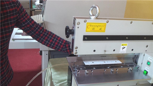 6、PC板推到鍘刀可切割范圍內(nèi)并踩下踏板,用手輕輕扶住PC板直到整個程序完成。